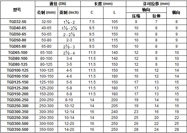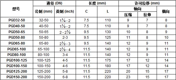 • PGD型、TGD型橡膠撓性異徑管道接頭在水泵的進出口及管道的變徑連接處使用價值很高,具有以一代二的特殊功效。